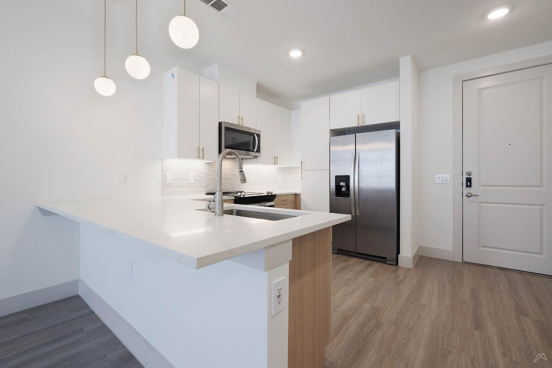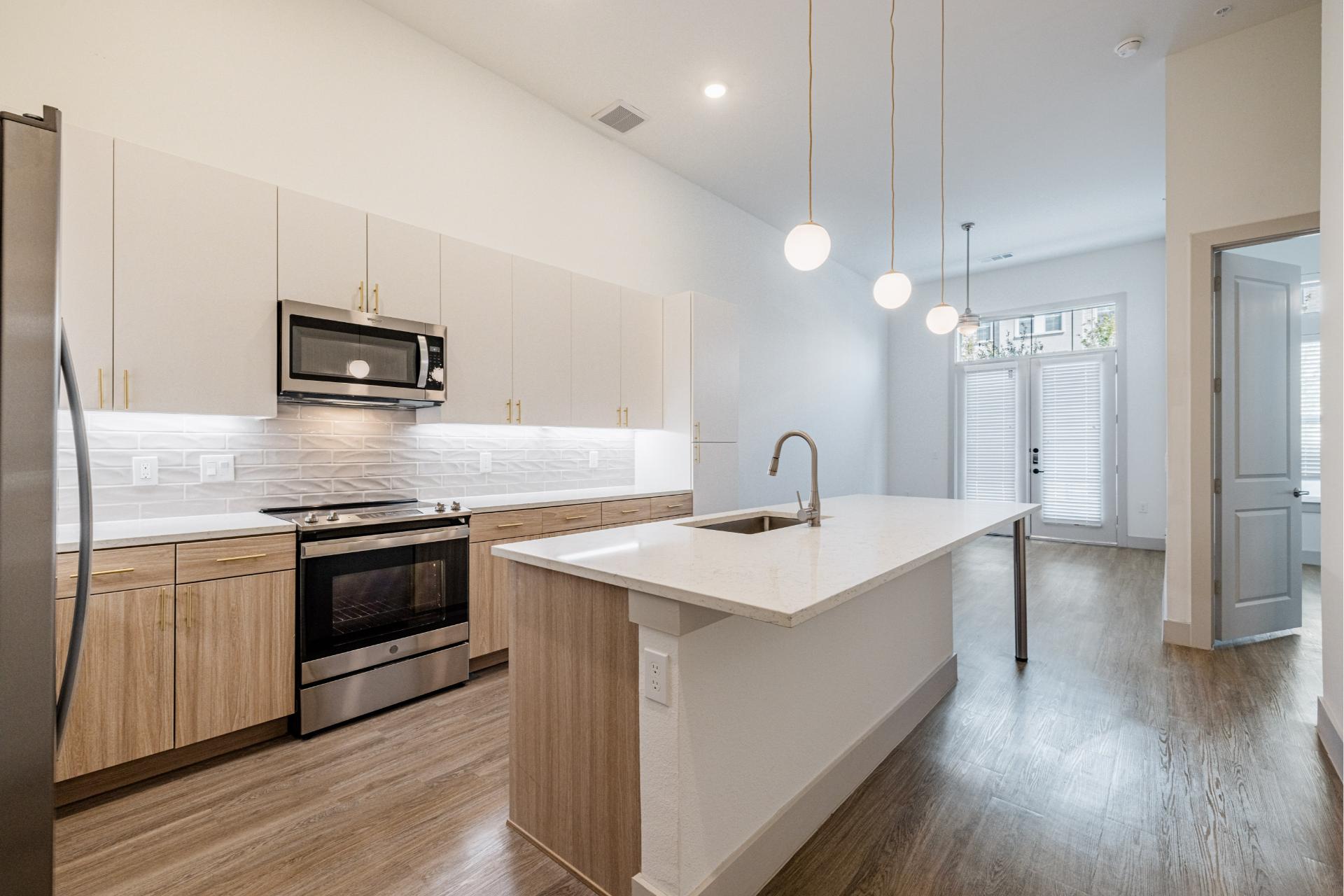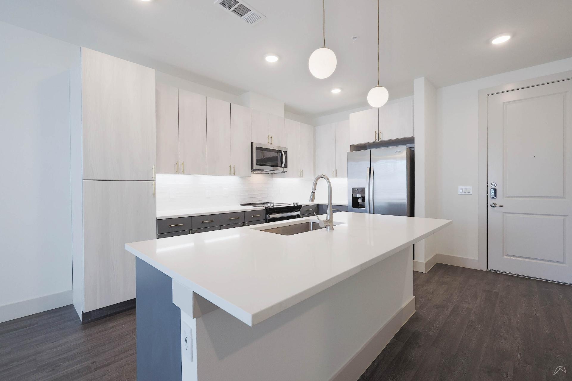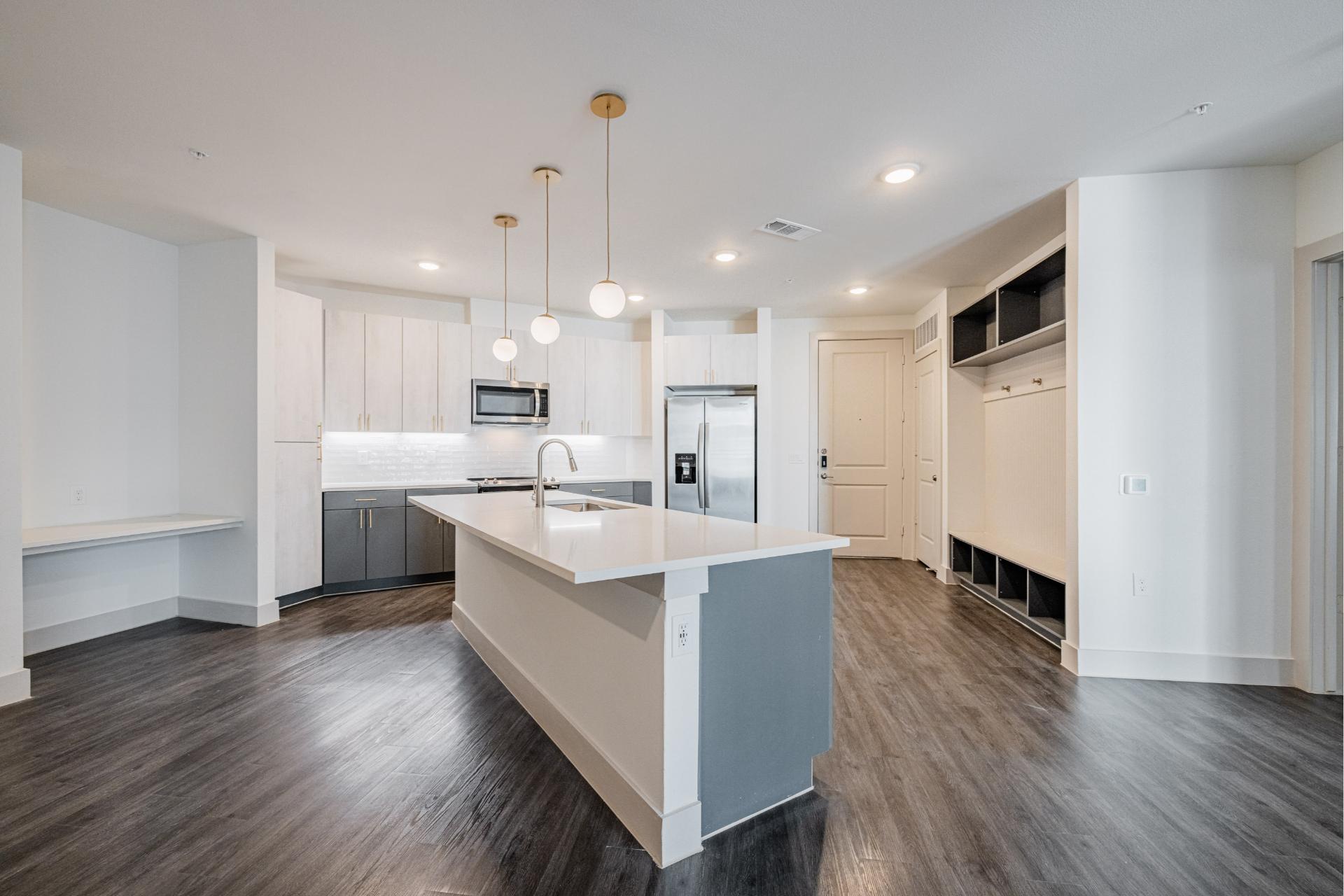 Explore our collection of architecturally driven apartment homes located right in Frisco Square. Each of our studio, one-, two-, and three-bedroom layouts blend impeccable style with innovative technology, such as keyless entry and smart light switches. And with all the intentional craftsmanship that comes standard in Presidium communities, coming home truly feels like an escape from the everyday.