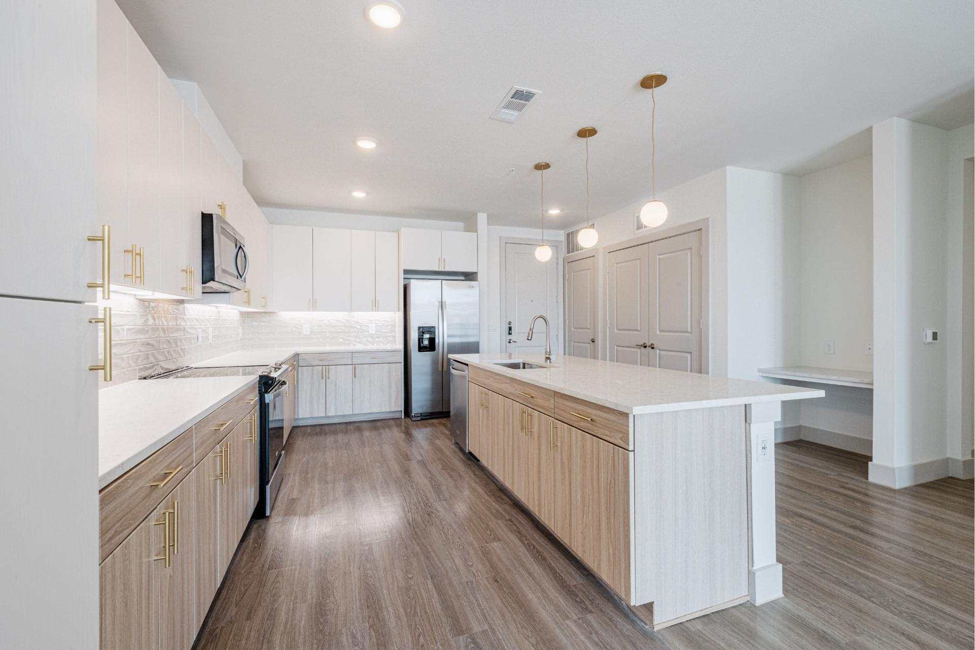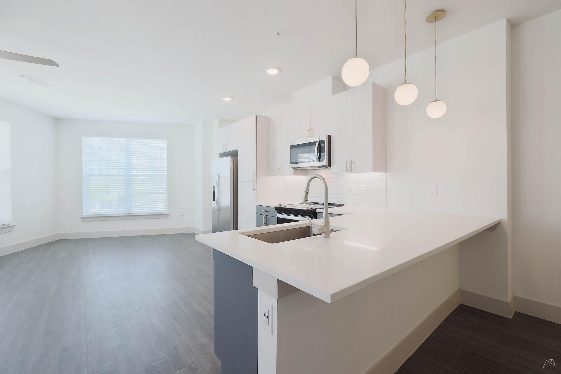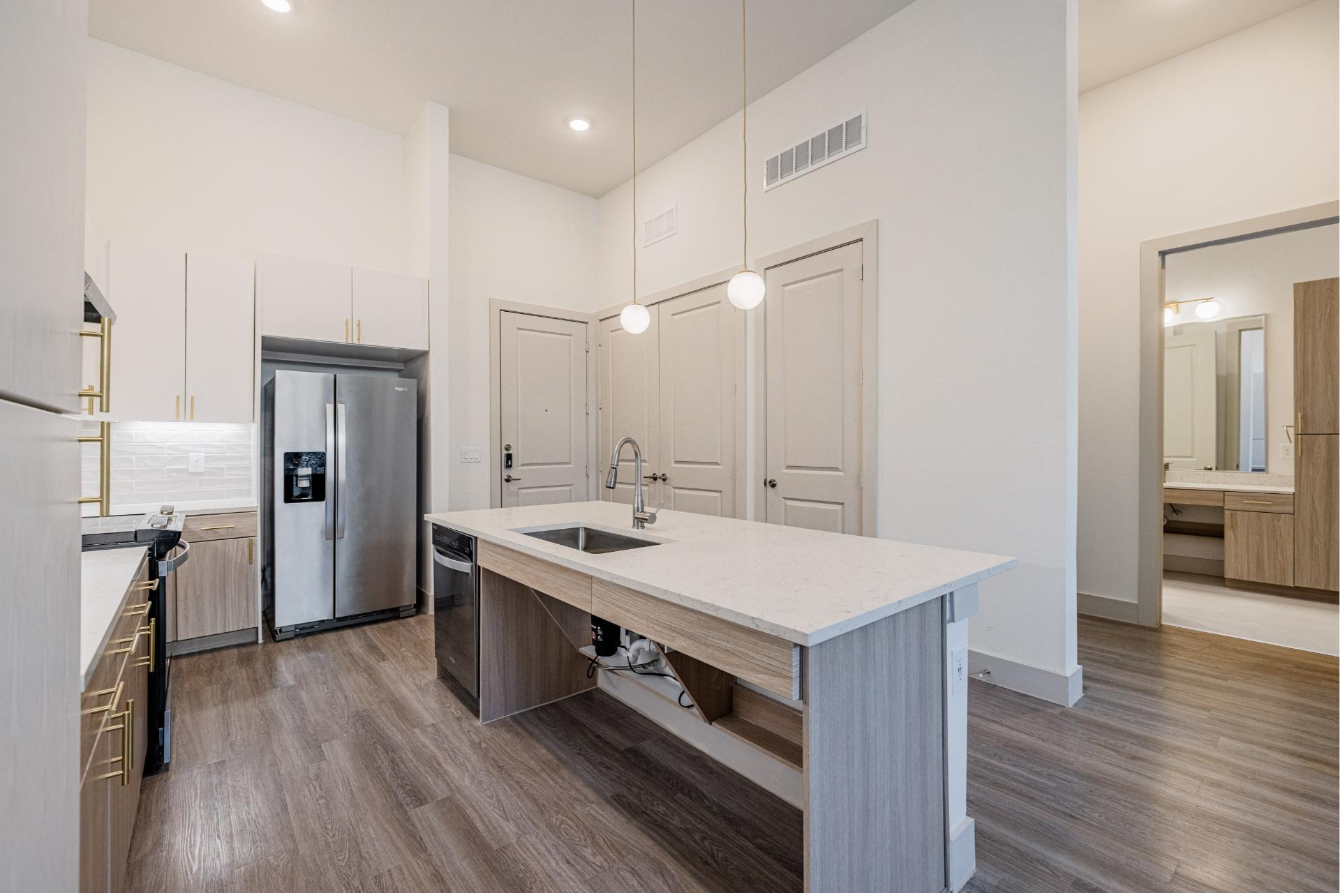 Explore our collection of architecturally driven apartment homes located right in Frisco Square. Each of our studio, one-, two-, and three-bedroom layouts blend impeccable style with innovative technology, such as keyless entry and smart light switches. And with all the intentional craftsmanship that comes standard in Presidium communities, coming home truly feels like an escape from the everyday.