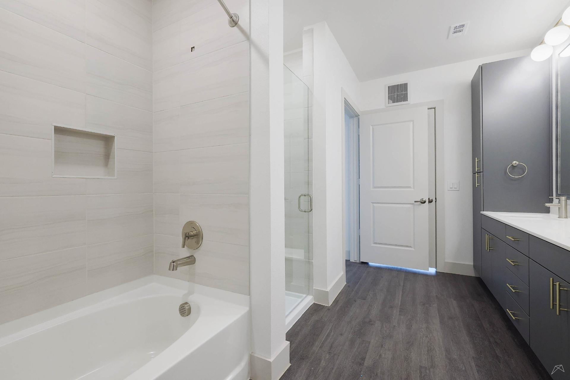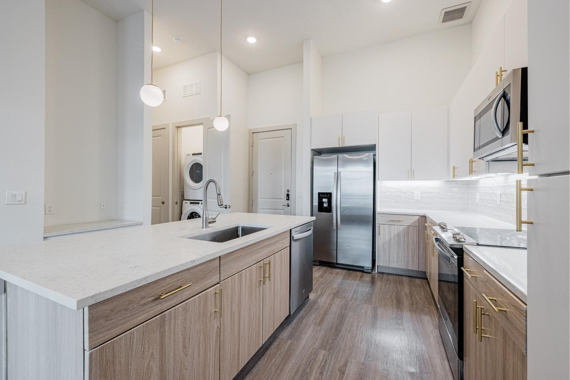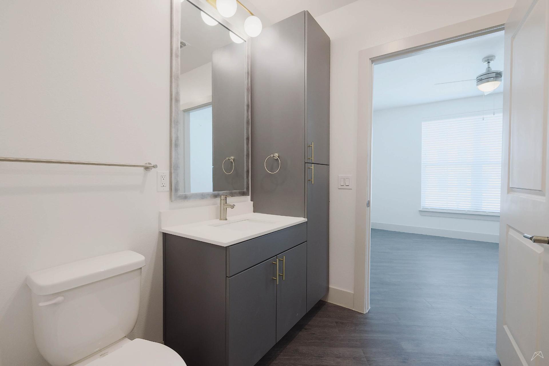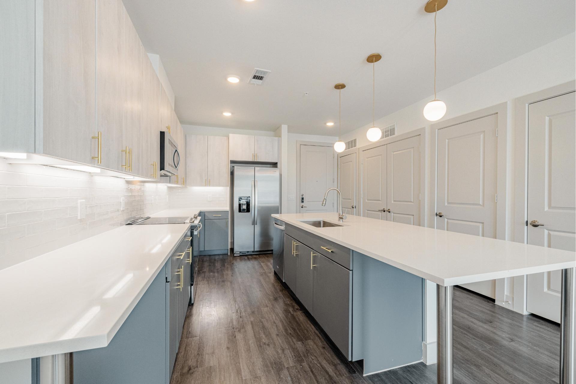 Explore our collection of architecturally driven apartment homes located right in Frisco Square. Each of our studio, one-, two-, and three-bedroom layouts blend impeccable style with innovative technology, such as keyless entry and smart light switches. And with all the intentional craftsmanship that comes standard in Presidium communities, coming home truly feels like an escape from the everyday.